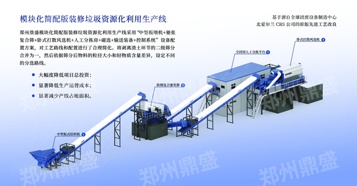 如果(guǒ)您2025年想(xiǎng)建一條規(guī)模化(huà)、高標準的裝修垃圾(jī)分類分(fèn)揀生產線,又不想投資太多,給您推薦模塊化簡配版裝修垃圾資源化利用生產線。