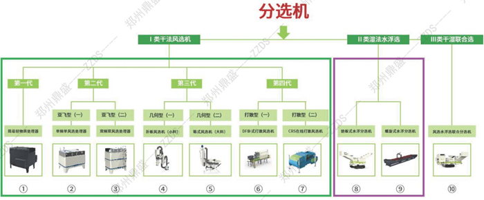 2、除(chú)雜(zá)裝備:鏈板式水浮分(fèn)選機;螺旋式浮(fú)選分選機;幹濕聯合分選機。