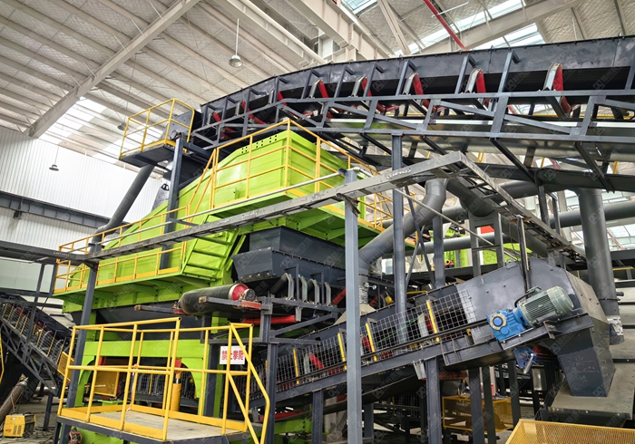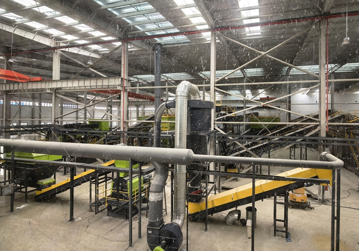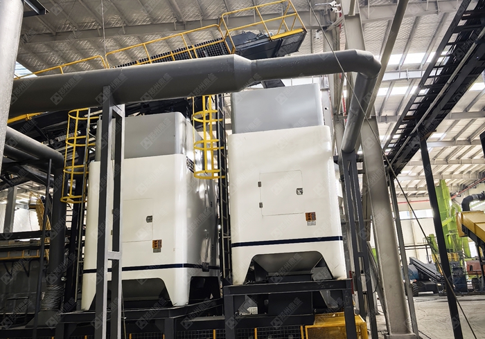 核心設備:破碎機(顎式 + 反擊式(shì))、篩(shāi)分機(振動篩 / 滾筒篩)、分選設備(磁選機(jī)、渦(wō)電(diàn)流分選機、風選機)、輸(shū)送機、水洗係統(若有)、環保設(shè)備(除塵、降噪(zào)、汙水處理)。