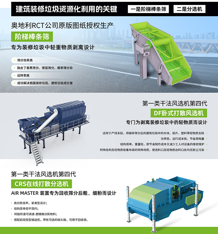 優勢一(yī):適用於(yú)產線末段,將(jiāng)破碎篩分後的建築垃圾中的木塊、紙片、塑料等輕物質去除(chú);