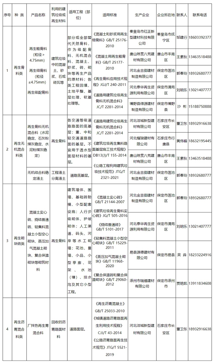 河北省建築垃圾再生產品目錄(第二(èr)批)