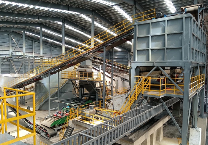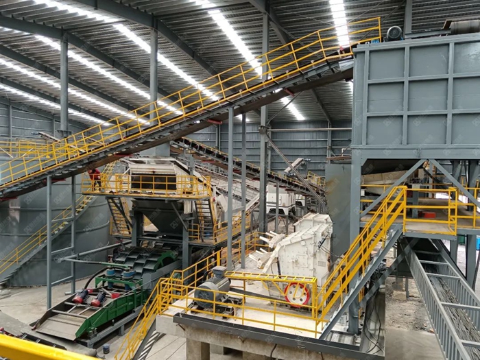 設備配(pèi)置(zhì):JC顎式破碎(suì)機、AF反擊式(shì)破碎機、“亞飛”輕物質分離器、YK建築垃圾專用圓振動篩、XS洗砂(shā)處理係統等。