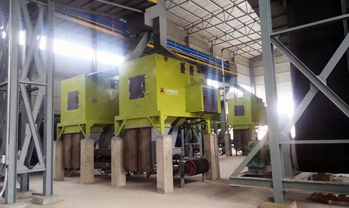 設備配置:VS振(zhèn)動篩(shāi)分喂料機、JC顎式破碎機、AF反擊式破碎機、YK圓振動篩、“亞(yà)飛”輕物質分離器、皮帶輸送機、除塵器等。