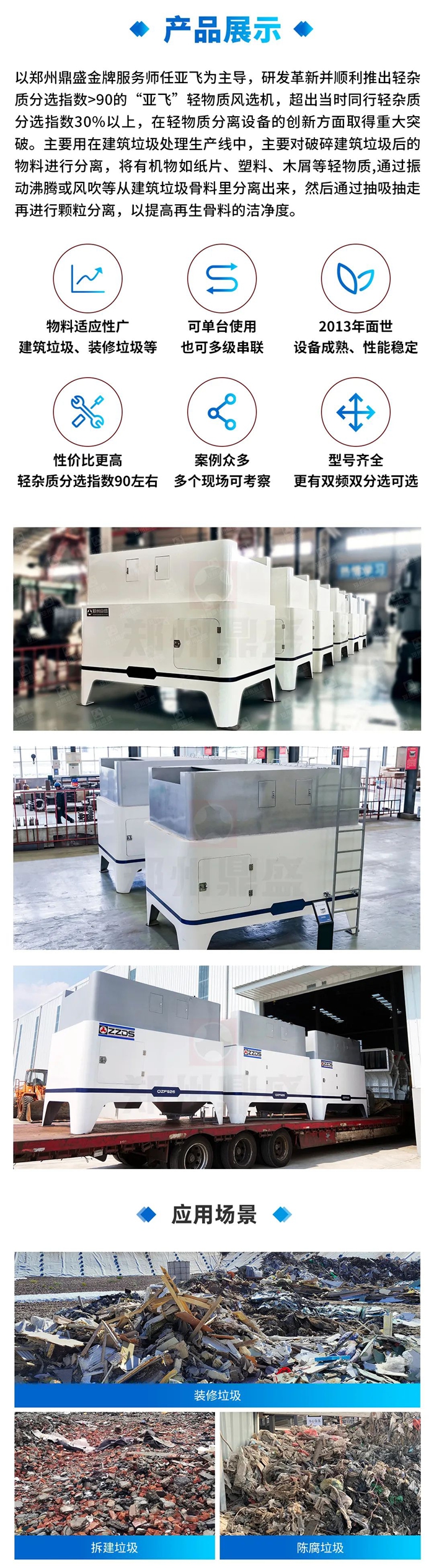 設備配置:VS振動篩分喂料機、JC顎式破碎機、AF建築垃圾專用破碎機、YK高效封閉圓振(zhèn)動篩、輕物質分離設備、除鐵係統、電控係統等(děng)。