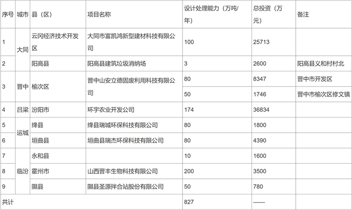 2.資源化利用設施(shī)布局不均衡。截至目前,全省建成的23座建築垃圾(jī)資(zī)源化利用設施中,主要分布在太原、晉中、呂梁、長治、臨(lín)汾、運城6市,晉城、大(dà)同(tóng)、朔州、忻州(zhōu)、陽泉5市均無建成項目,亟待建設建築垃圾資源化利用設施,提高減量化、資源(yuán)化、無害化處理水平。