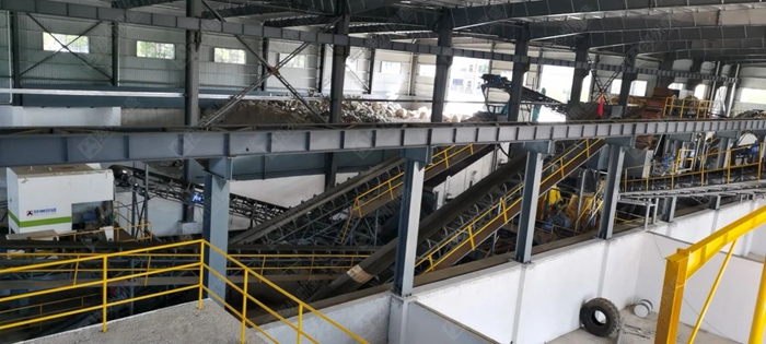 設備配置:板式喂料機、階梯棒條篩、雙軸撕裂機、滾筒篩(shāi)、臥式打散風選機、人工分揀倉、除鐵器、收塵器等